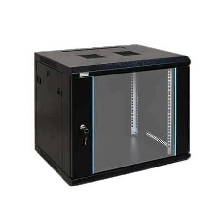 Coffret mural informatique Teclink ARMOIRE19-9U-450 9U 600x450mm monté - Baie réseau murale noire
