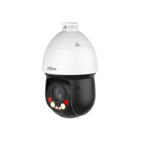 La Dahua SD4D425MB-HNR embarque 2 illuminateurs IR et 2 illuminateurs à lumière blanche, chacun portant jusqu'à 100 mètres. La technologie Smart Dual Light active automatiquement la lumière blanche à l'apparition d'une cible pour une capture couleur nocturne, puis repasse en IR pour réduire la pollution lumineuse. Explorez la gamme Dahua de caméras IP pour des solutions complémentaires fixe ou panoramique.