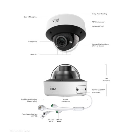 - Stockage microSD jusqu'à 512 Go : enregistrement local en cas de perte réseau ou pour archivage autonome