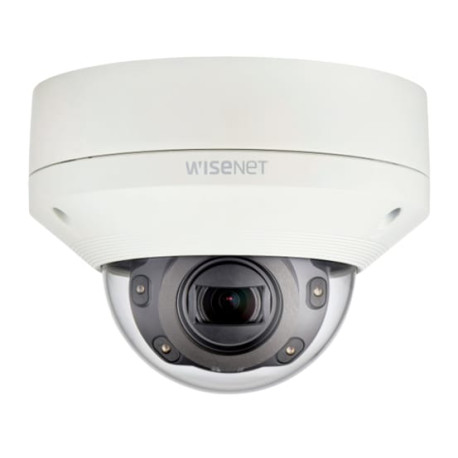 Caméra dôme vandal Hanwha XNV-6080RW 2MP avec optique varifocale 2,8-12mm (4.3x), IR 50m, application ANPR RoadWatch préinstallée sur SD 32Go, certifiée IP67/IK10.